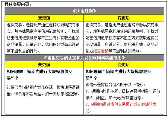 在5月23号的时候,淘宝网官方公布的《虚假交易规则及实施细则变更公示通知》中,对虚假交易的规则做了进一步的调整,在这次调整里面,主要变更的内容有两方面: