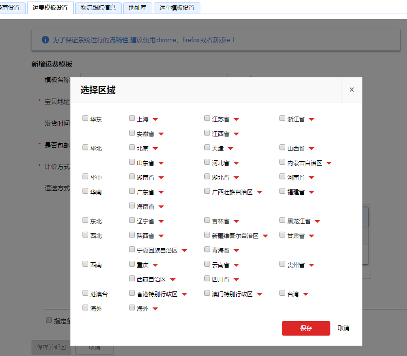 在这里有个小知识,系统鉴别包邮。并不是一定要设置成‘卖家承担邮费’才算包邮。我们在邮费模板中设置部分地区邮费为0,也算为包邮的。